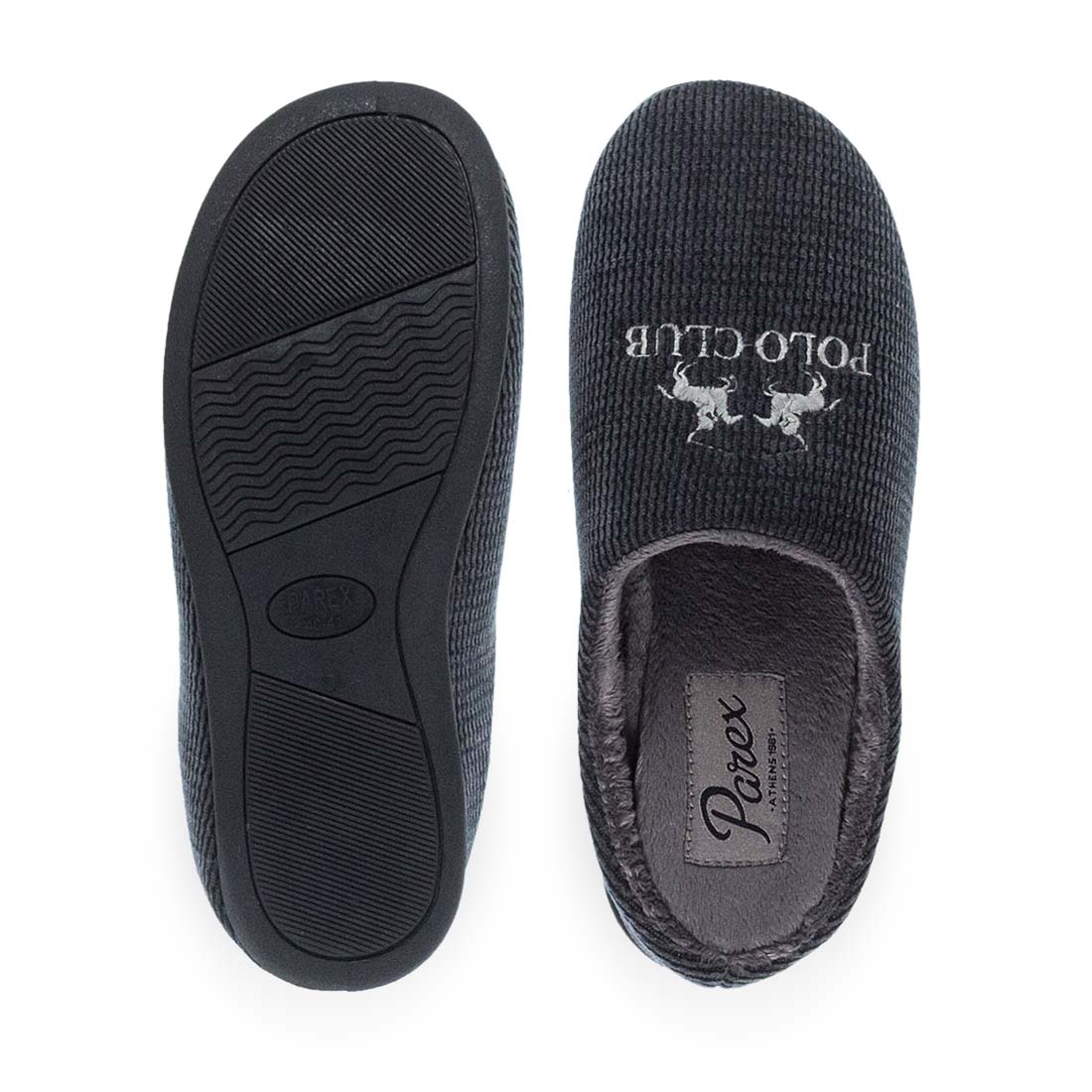 Αναπαυτικές παντόφλες σπιτιού σε κοτλέ ύφασμα με κεντημένο σχέδιο. Σόλα που δεν γλιστράει. Μαλακός εσωτερικός πάτος. Ιδανικές ανδρικές παντόφλες σπιτιού για ατελείωτες ώρες χαλάρωσης.