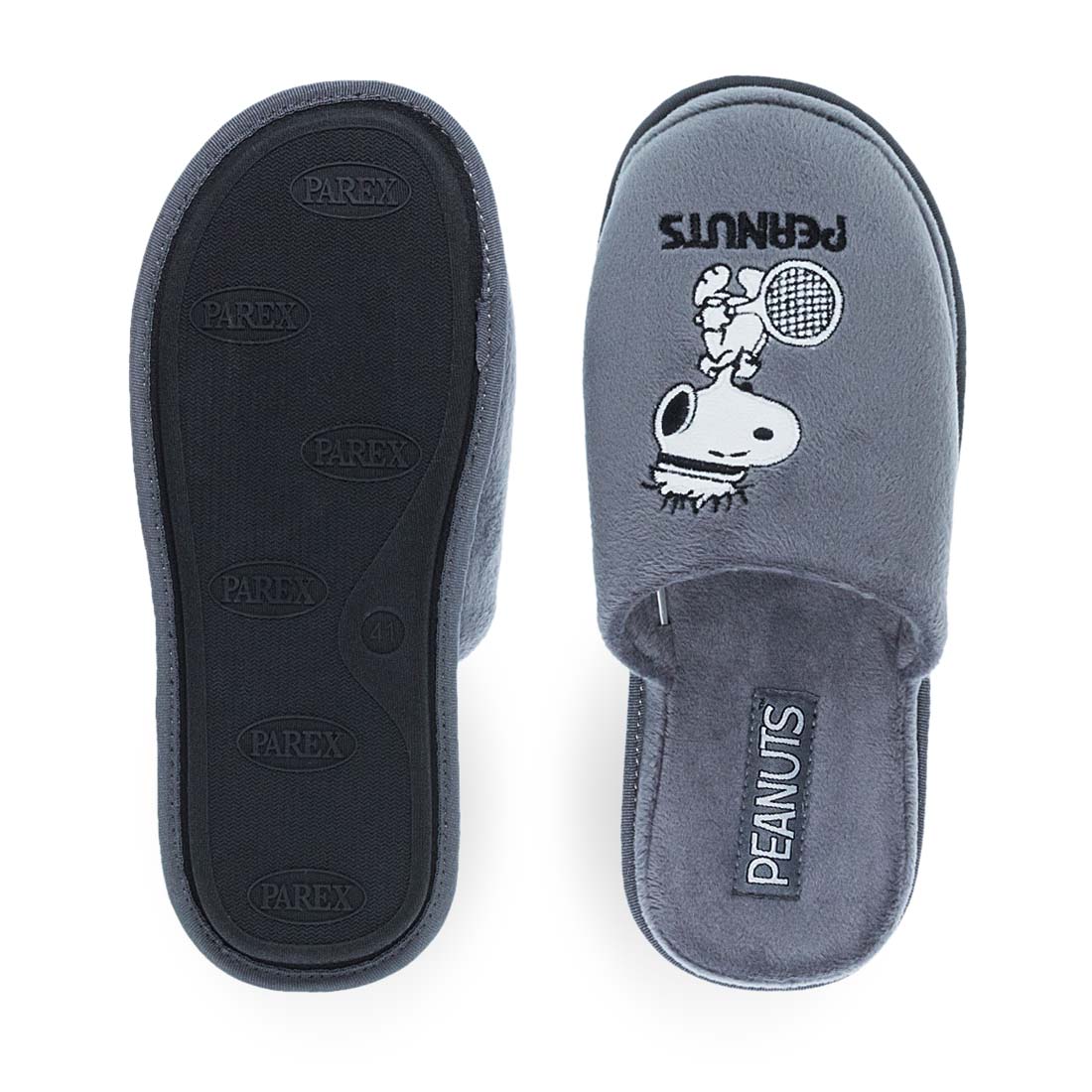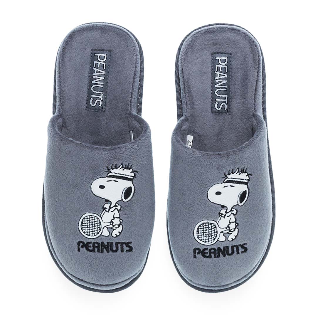 Ανδρικές παντόφλες σπιτιού Peanuts. Γκρι και μπλε ανδρικές παντόφλες Snoopy Peanuts με κεντημένο σχέδιο και μαλακή επένδυση – ιδανικές για άνεση στο σπίτι.