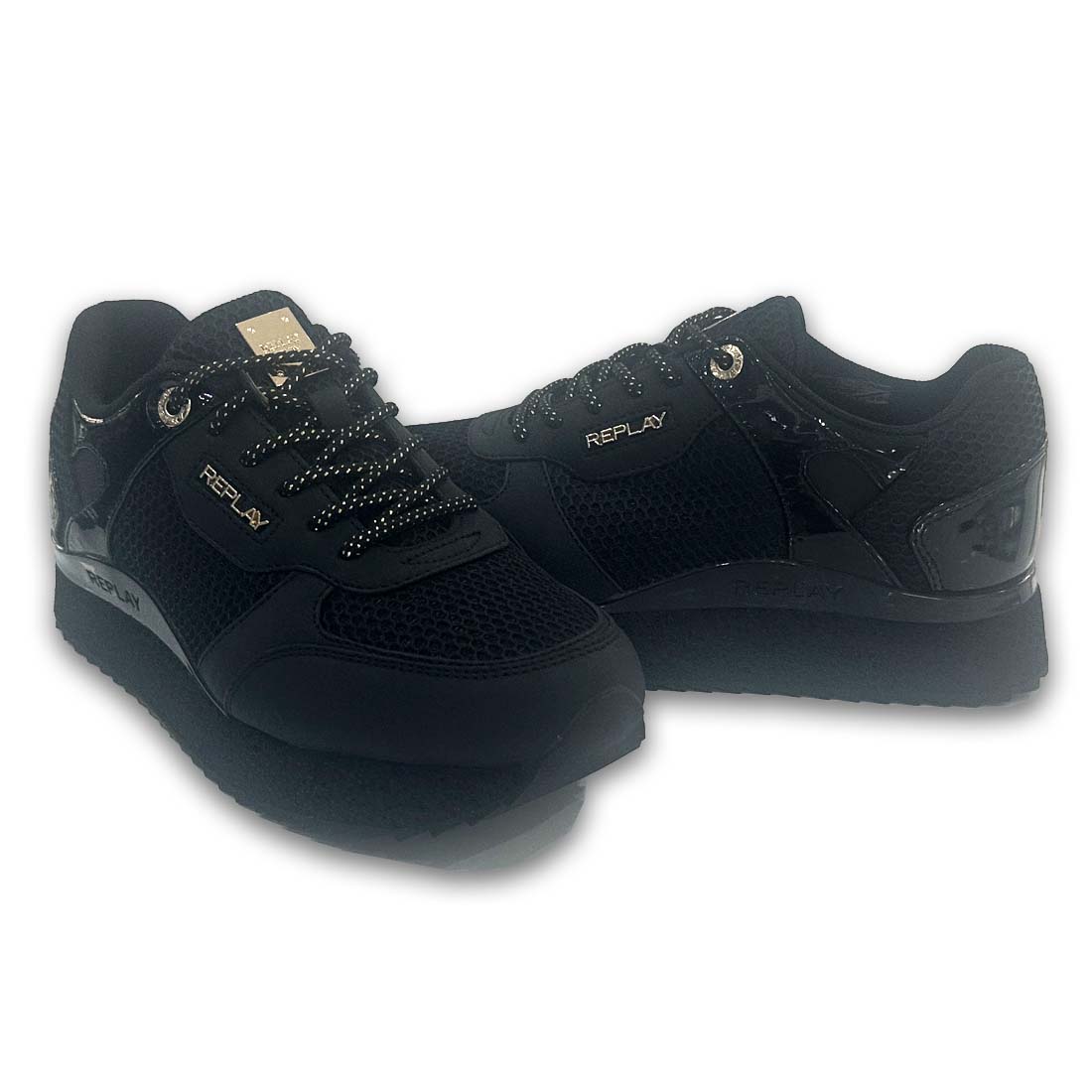 Γυναικεία sneakers Replay PANNY SIMPLY σε συνδυασμό υλικών με λογότυπα Replay και λουστρίνι λεπτομέρειες.