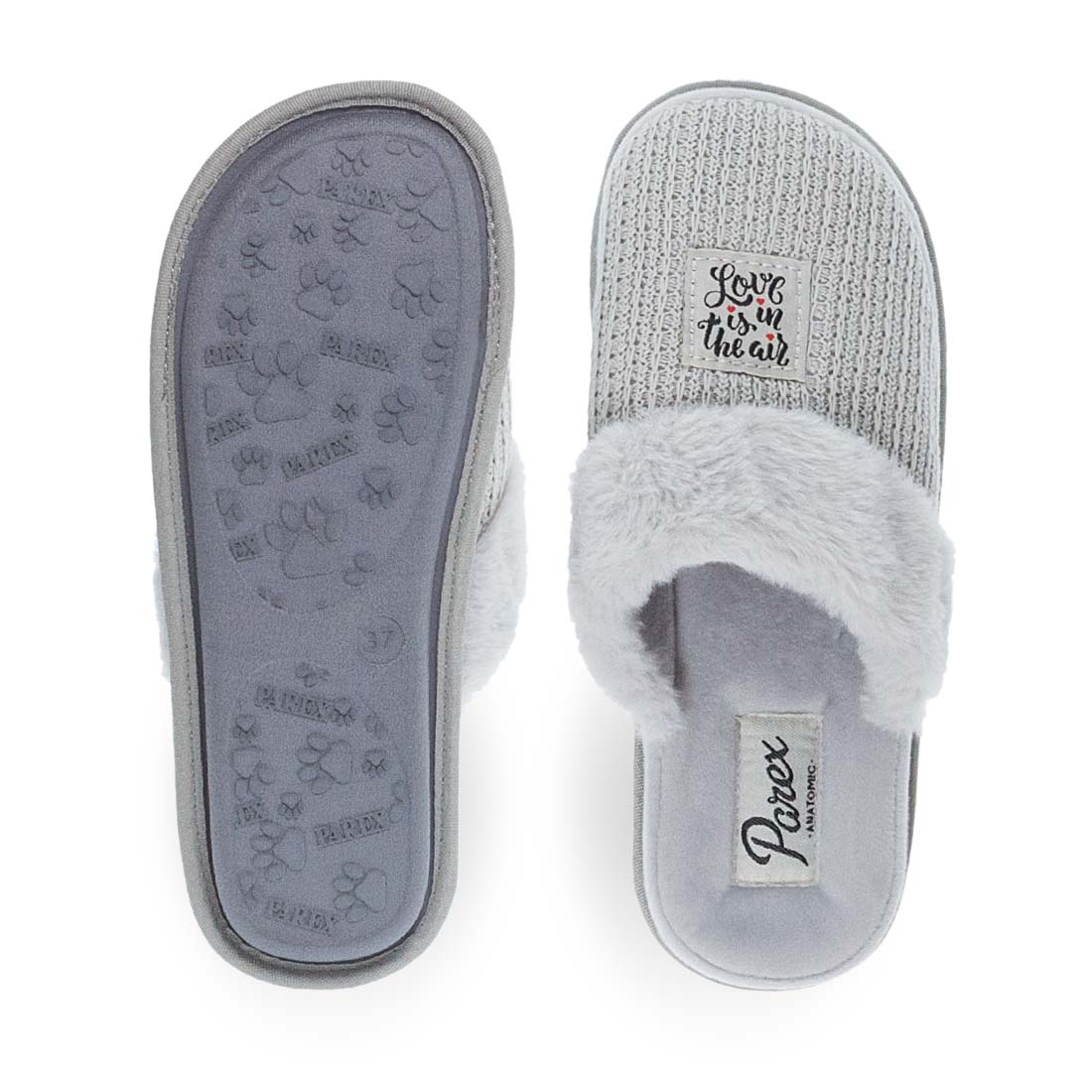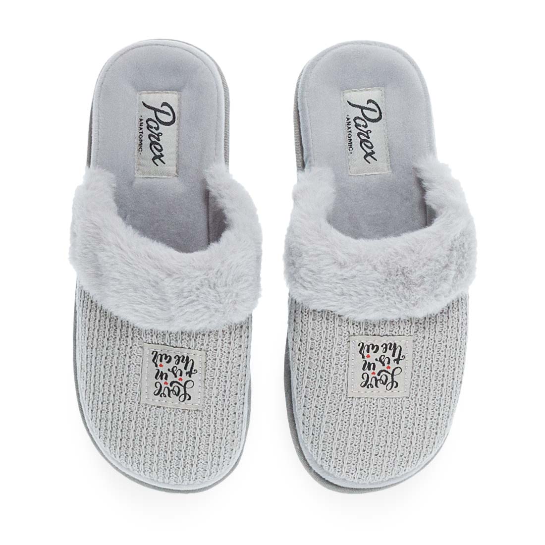 Υπέροχες παντόφλες σπιτιού Parex με πλεκτό σχέδιο και συνθετική γούνα. Διαθέτουν βελουτέ εσωτερικό πάτο, εξαιρετικά μαλακό. Διαχρονικές και ανθεκτικές για να προστατεύσουν τα κουρασμένα πόδια σας.