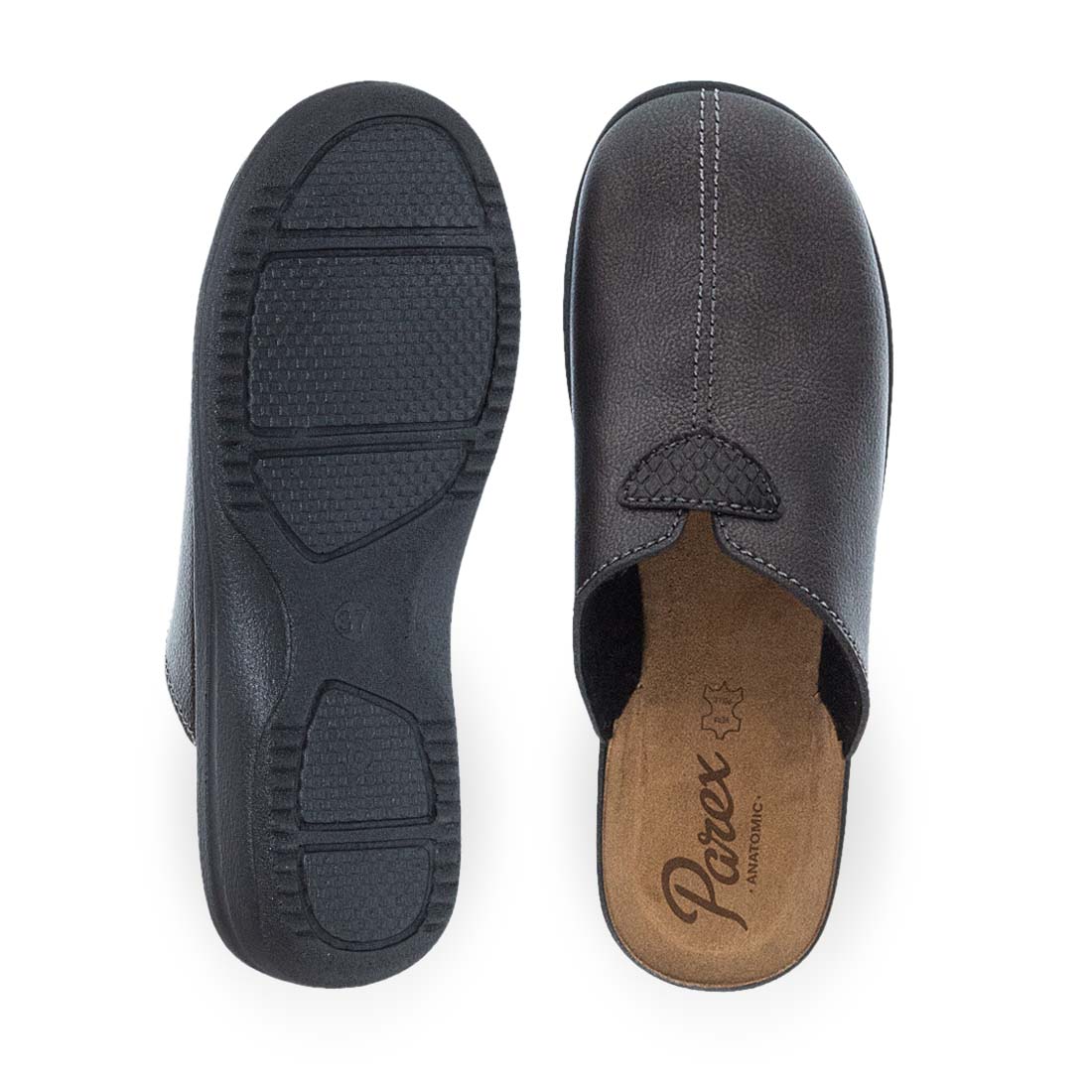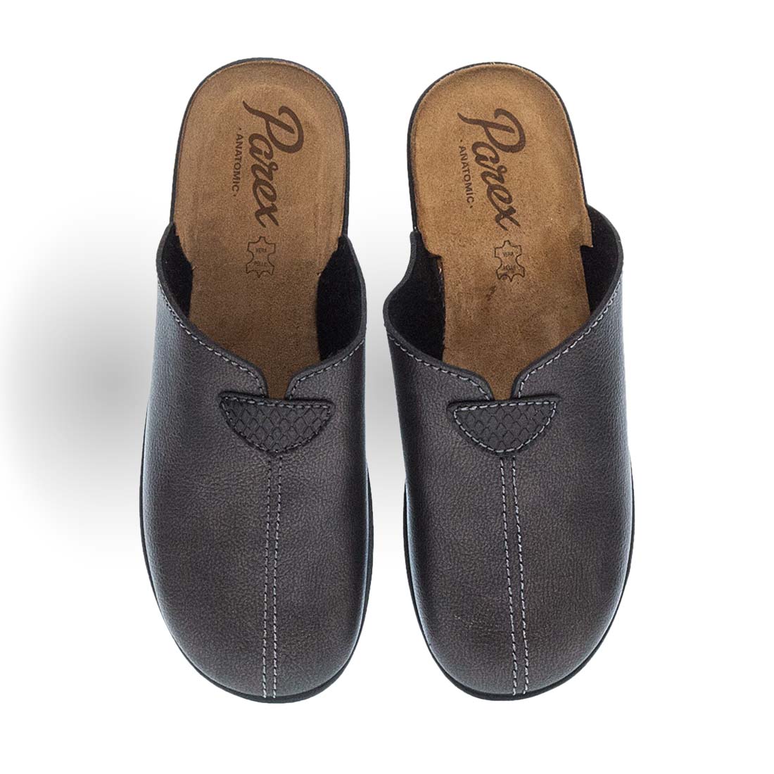 Γυναικείες παντόφλες Parex με εσωτερική επένδυση από ζεστό ύφασμα και δερμάτινο πάτο με τακούνι. Άνετες παντόφλες που χαρίζουν σωστή στάση σώματος.