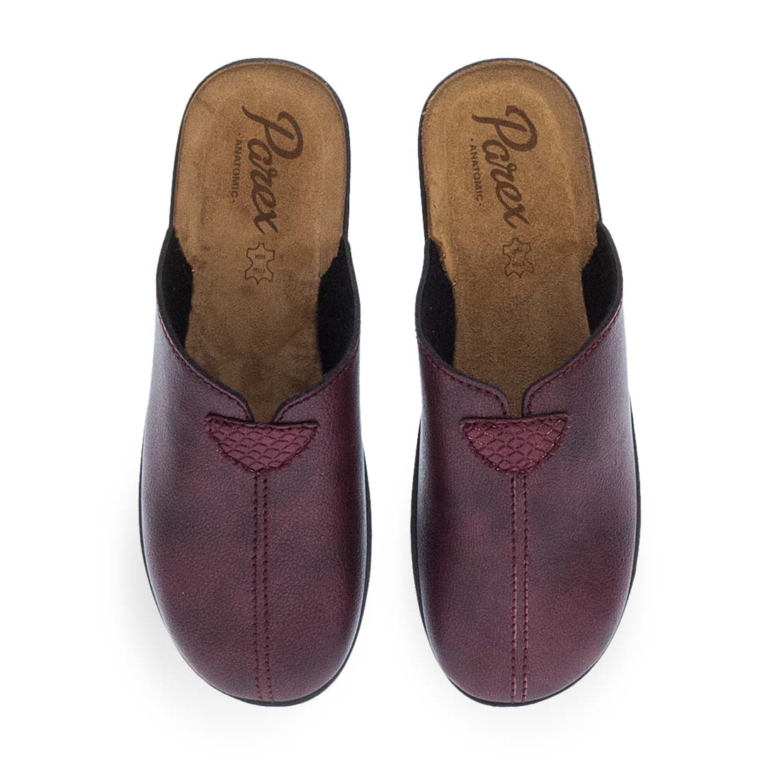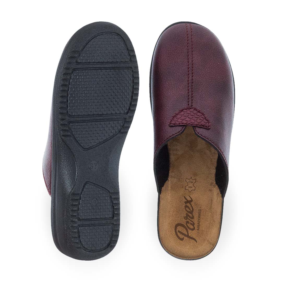 Γυναικείες παντόφλες Parex με εσωτερική επένδυση από ζεστό ύφασμα και δερμάτινο πάτο με τακούνι. Άνετες παντόφλες που χαρίζουν σωστή στάση σώματος.