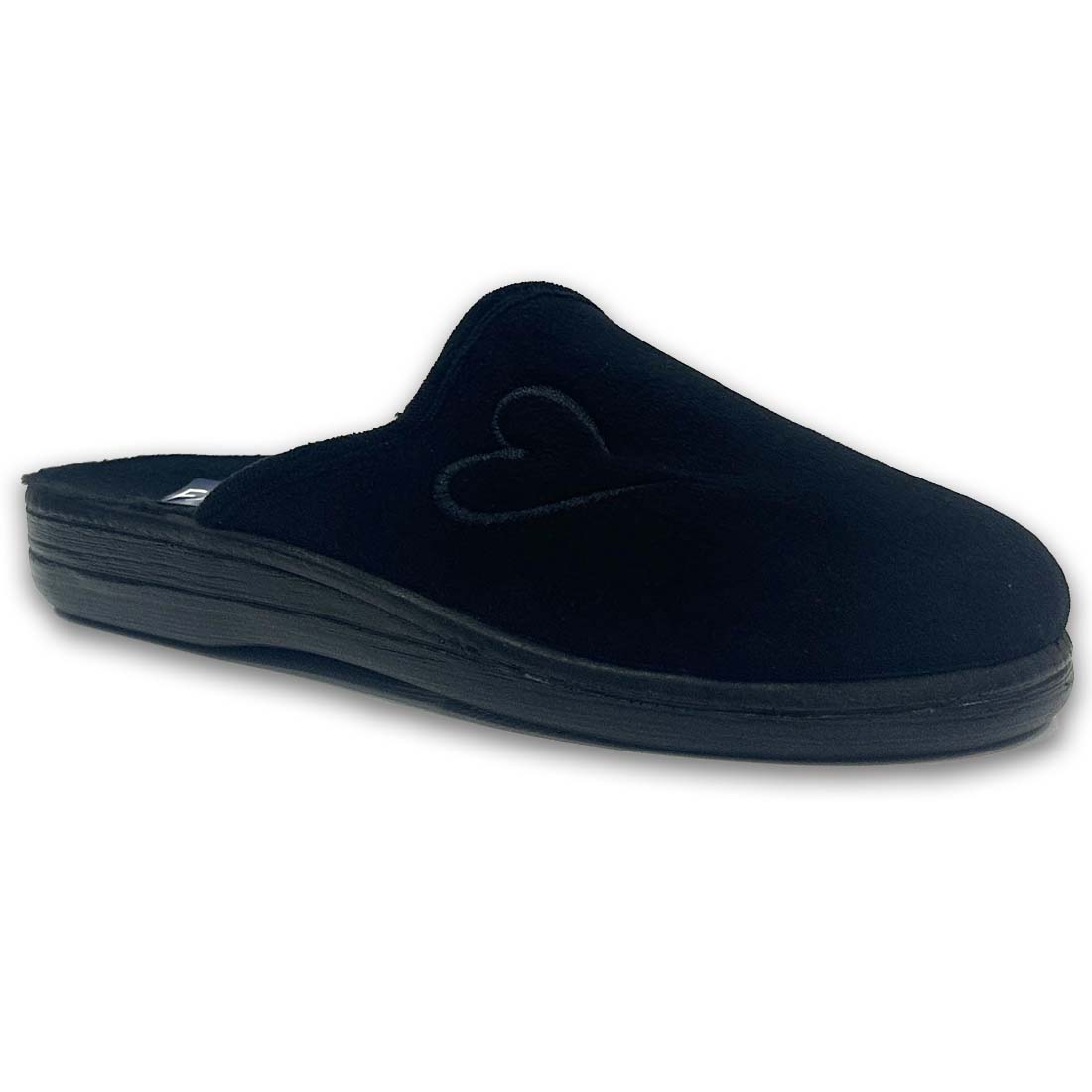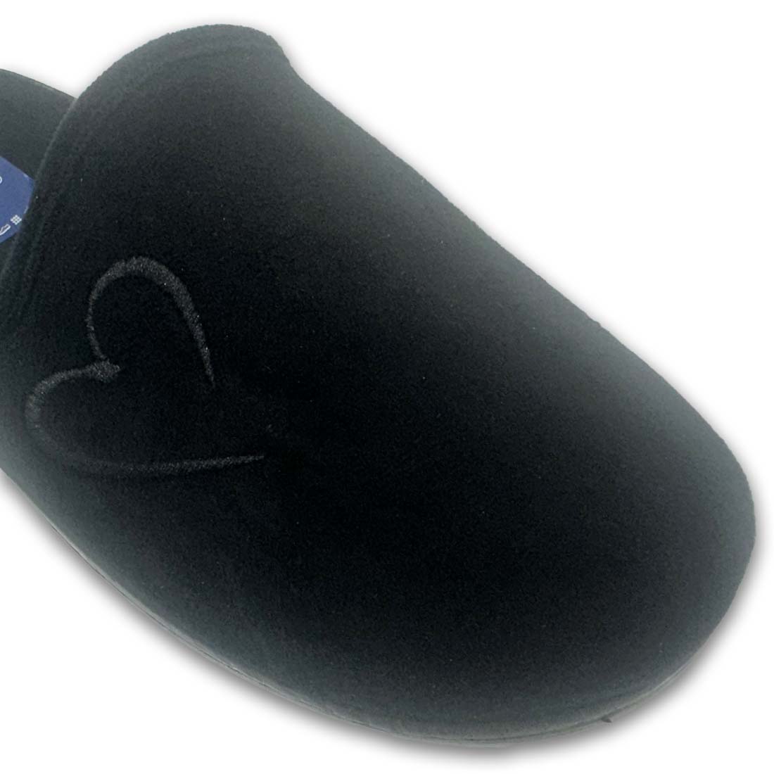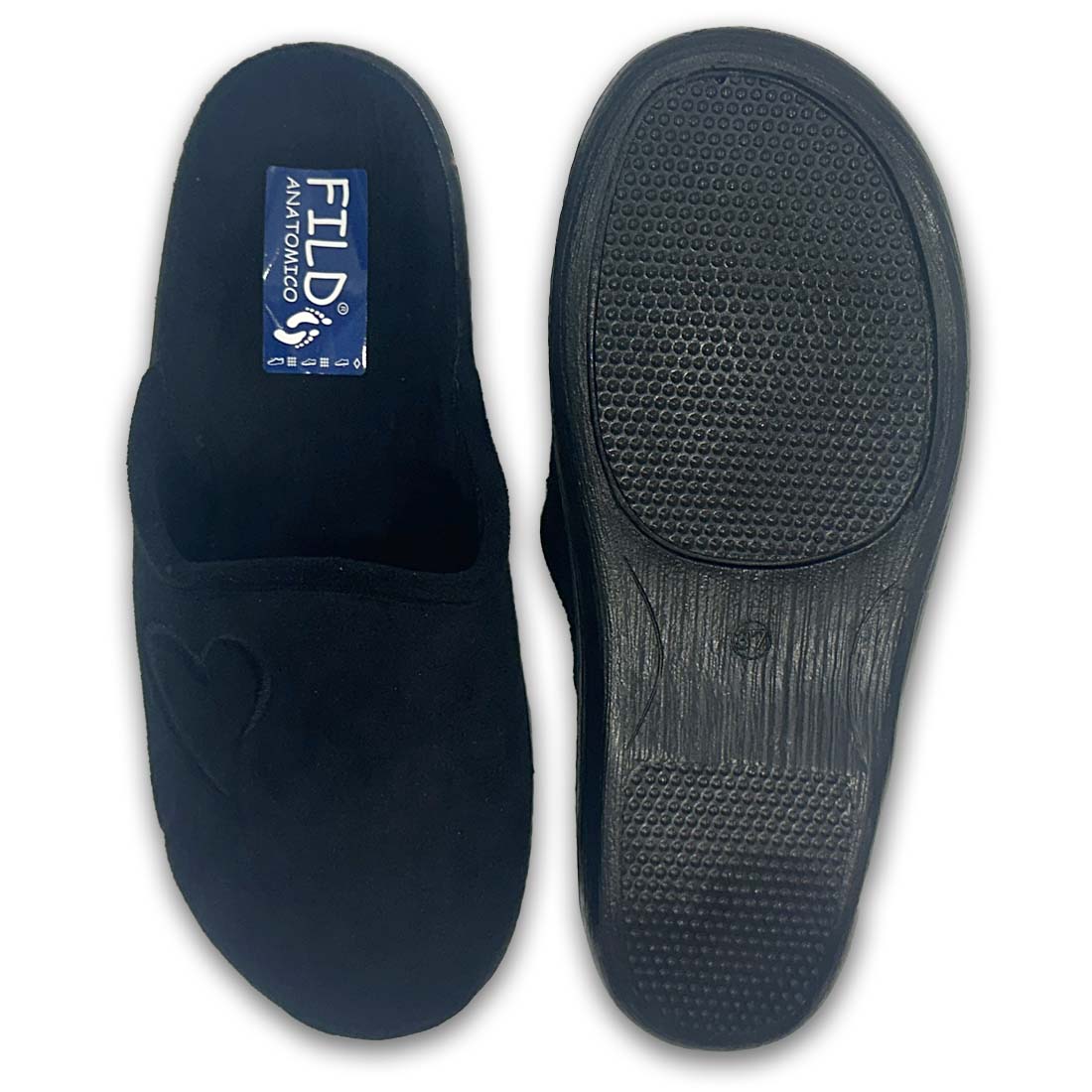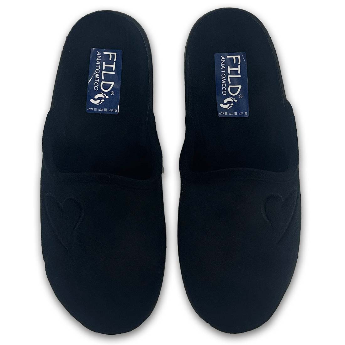 Γυναικείες ανατομικές χειμωνιάτικες παντόφλες σπιτιού της εταιρείας FILD, χνουδωτές με κεντητό σχέδιο σε σχήμα καρδιάς.