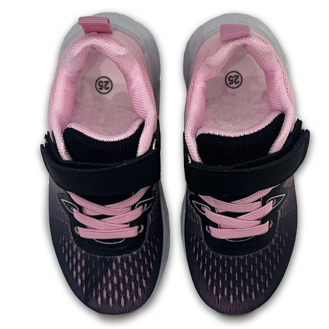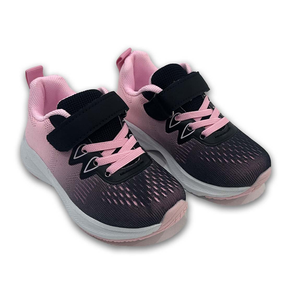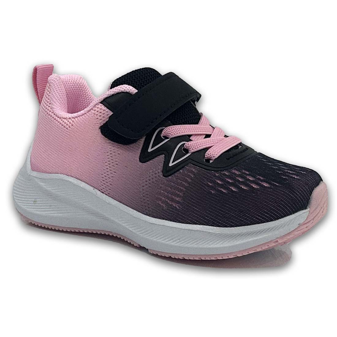 Παιδικό υφασμάτινο sneaker σε μαύρο σε συνδυασμό με ροζ χρώμα. Διαθέτει velcro και κορδόνια από ελαστικό ύφασμα για εύκολη εφαρμογή.